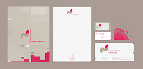 Full branding and corporate identity package for a construction company, including business cards, folders, notepads, envelopes and complimentary slips.
